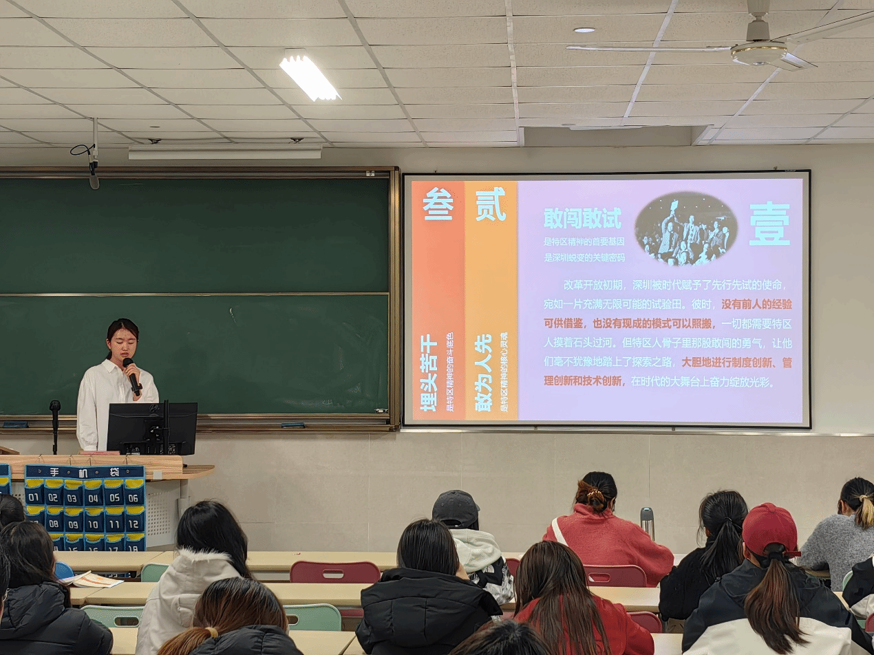 为了深入学习中国共产党人的精神谱系之特区精神,党建服务与人才培训中心于2025年3月28日展开了“特区精神“为主题的高峰论坛活动。俞安琪讲师主要从埋头苦干、敢为人先、敢闯敢试这三个特区精神的内涵进行详细阐述。