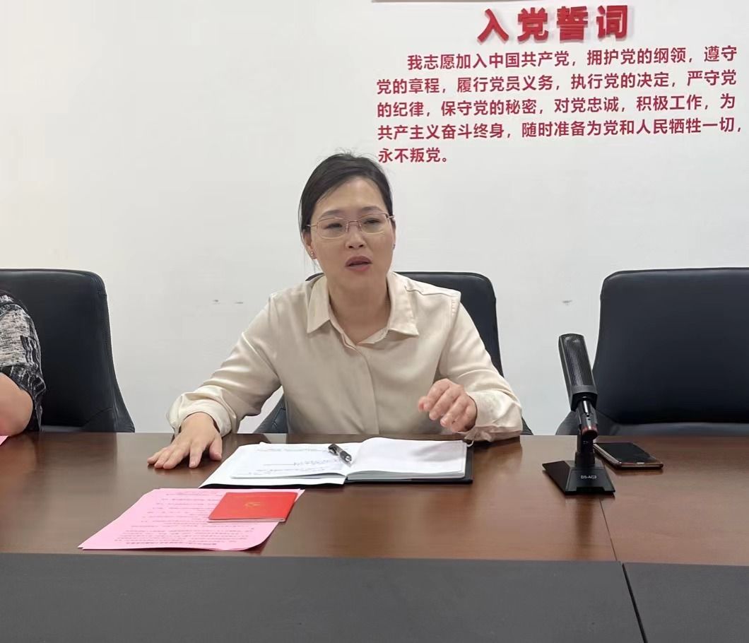 “我志愿加入中国共产党,拥护党的纲领,遵守党的章程......”在支部党员政治生日活动中,全体党员在庄严的党旗下重温入党誓词,共同回忆入党宣誓时的庄严承诺和奋斗决心。学院党委副书记姜旭英为支部上半年政治生日的党员送上“党员政治生日贺卡”。贺卡上印有入党誓词,书写了“政治生日寄语”,为党员同志送上来自支部的温暖关怀。