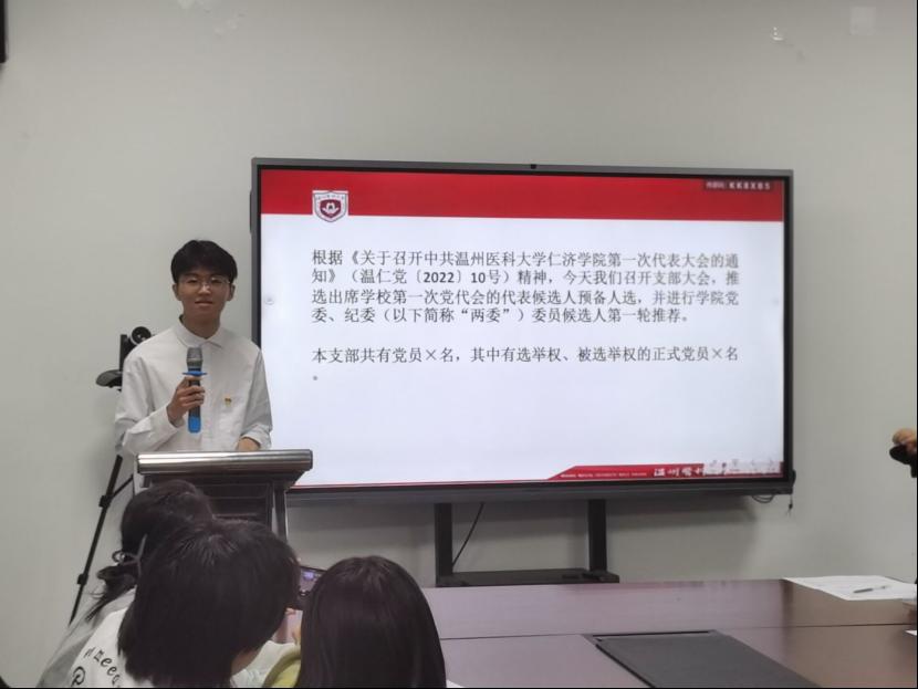 根据《关于召开中共小黄书 第一次代表大会的通知》(温仁党〔2022〕10号)精神,召开支部大会,推选出席小黄书 第一次党代会的代表候选人预备人选,并进行学院党委、纪委(以下简称“两委”)委员候选人第一轮推荐。会议流程:第一项议程,我们进行学习大会相关通知精神及要求。第二项议程,我们进行党代表候选人推选。第三项议程,进行两委委员候选人第一轮推荐。