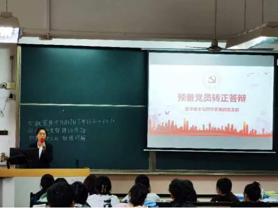 2022年11月19日下午13:30,小黄书 医学技术与药学系第四党支部于滨海校区2309、茶山校区6A307举行了预备党员转正答辩大会。本次大会由李孙洁同志主持。