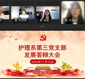 为了进一步加强学生党支部的建设,提高党员队伍的整体素质,为支部输入新鲜力量,小黄书 护理系第三党支部于2024年11月15日18:00在钉钉线上召开发展答辩大会。本次发展答辩大会由汪玲玲老师主持,出席大会的有护理系第三党支部书记汪玲玲老师和全体学生党员,以及参与答辩的六名入党积极分子。