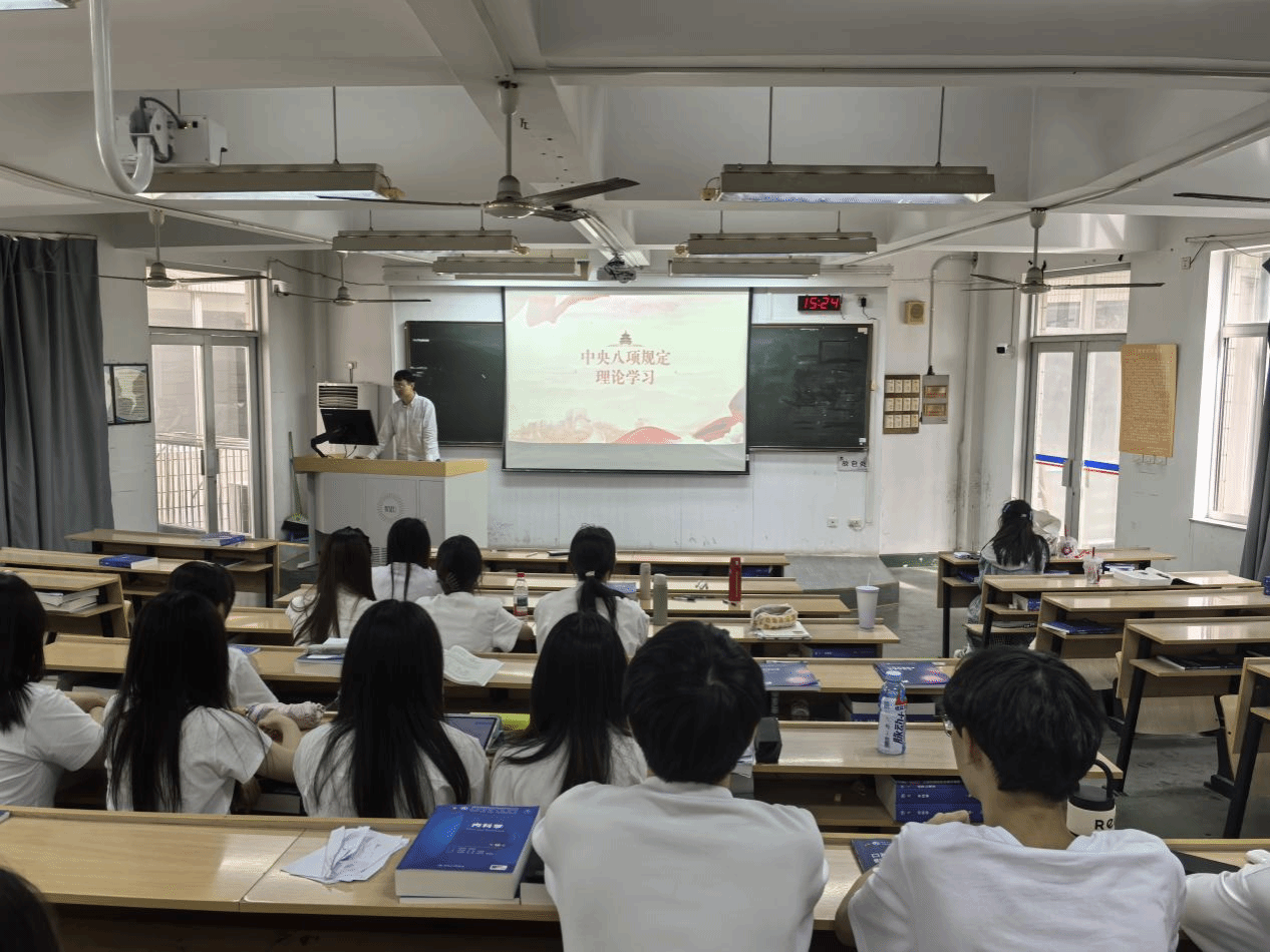 答辩大会后,支部召开了4月份的主题党日活动,李少华老师就中央八项规定精神,结合具体事例向支部全体同志进行了讲解,支部同志清晰了解到从严管党治党的重要意义。