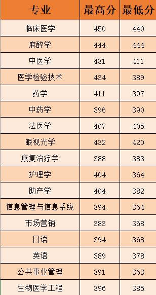 最高分450分,最低分363分,省控线360分。