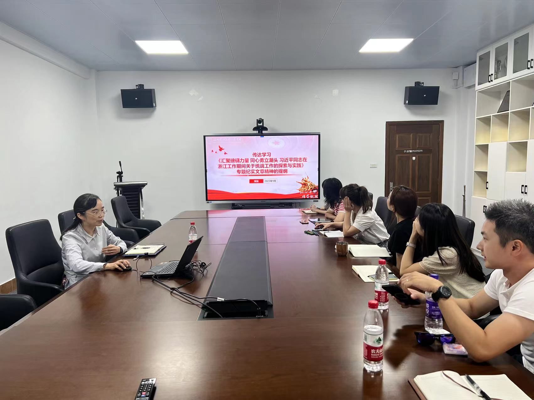 刘洁带领各位老师学习了《汇聚磅礴力量 同心勇立潮头 习近平同志在浙江工作期间关于统战工作的探索与实践》专题纪实文章精神以及省委书记易炼红在全省统一战线暑期读书会上的讲话精神。刘洁强调,各位老师要不断深化对新时代统一战线工作的认识和理解,将海外的学习生活经验体会转化为推动学院工作的强大力量,不断助力学院高质量发展。
