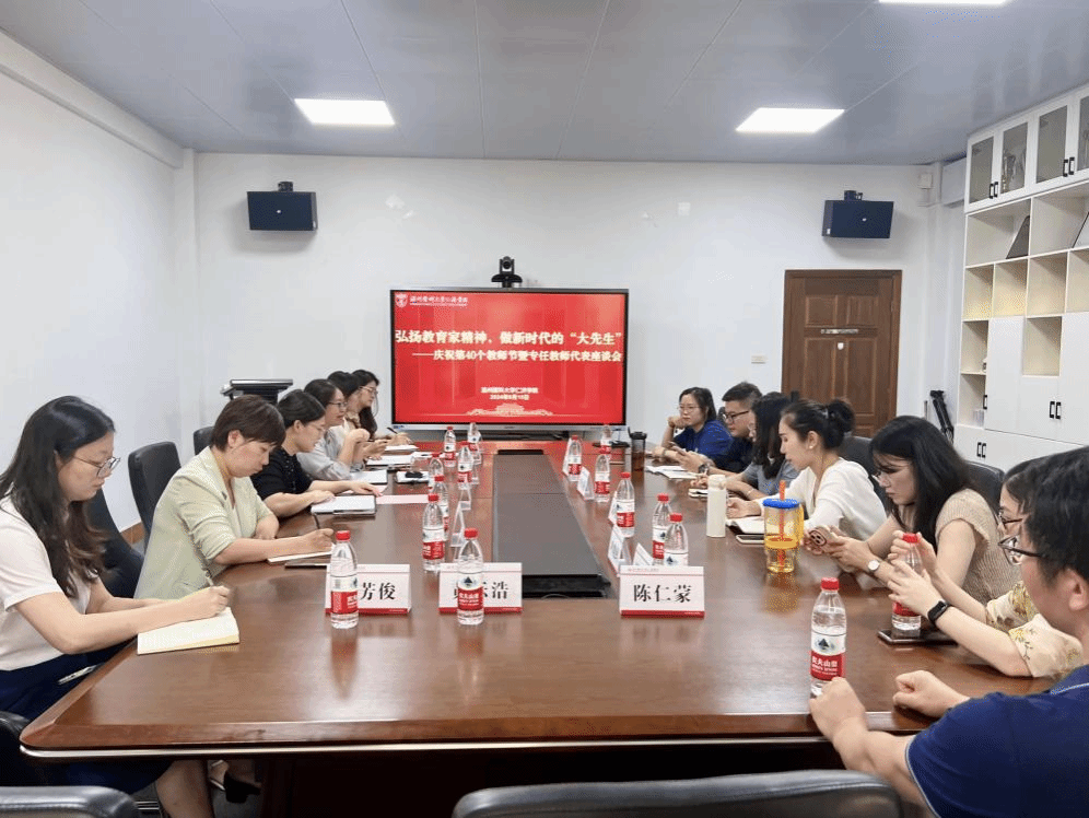 为进一步弘扬教育家精神,推动学院高质量发展,学院召开庆祝教师节座谈会。学院党委书记彭红雷、党委副书记姜旭英、相关部门负责人与专任教师代表参加此次座谈会。会上,教师代表们结合自身岗位,围绕如何做好新时代“大先生”,畅谈经验体会,为学院发展建言献策。