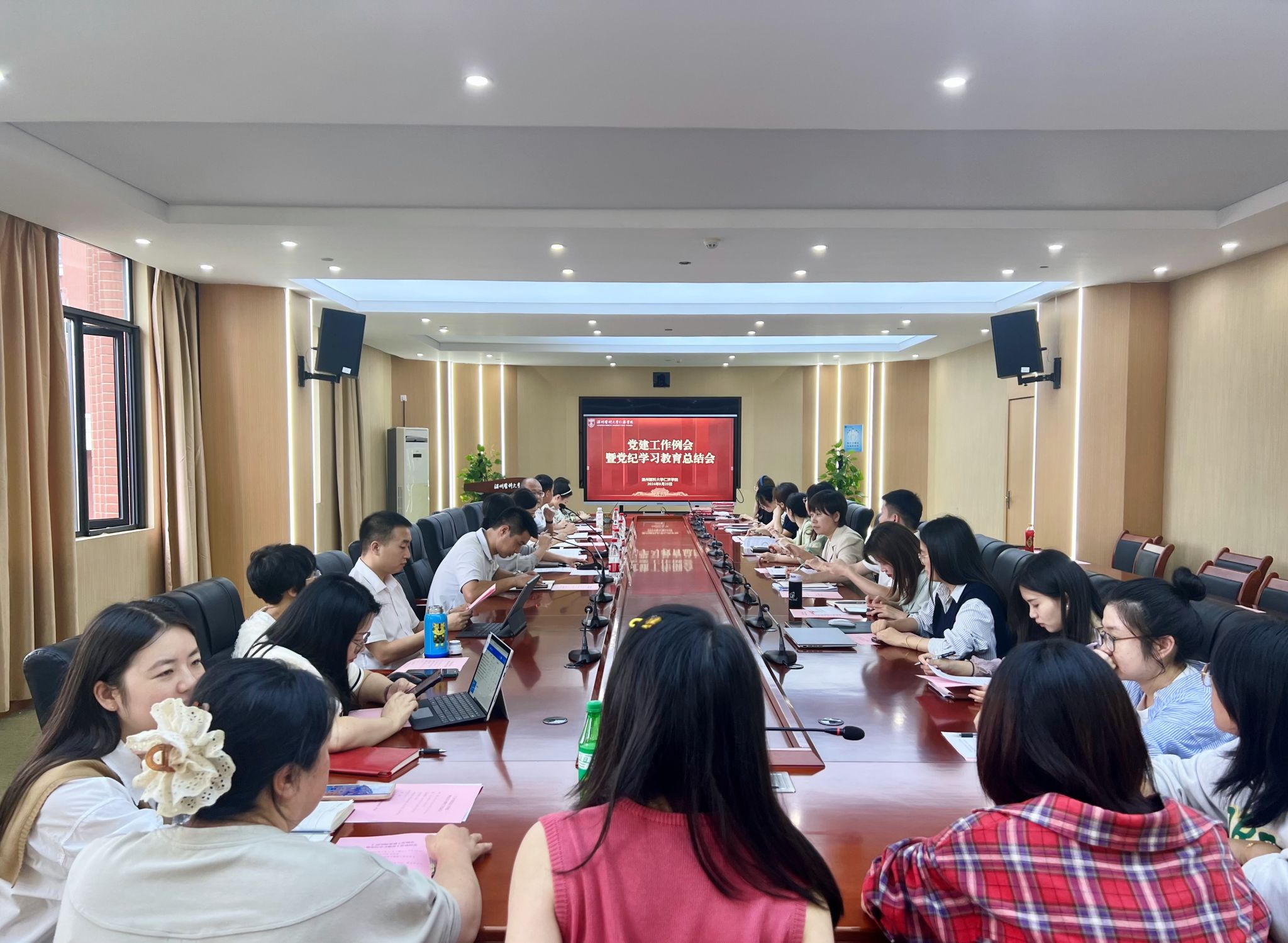 会议强调,全院各党支部和广大党员干部要总结好、运用好、巩固好党纪学习教育成果,增强融入日常、抓在经常的高度自觉,不断完善党纪学习教育常态化长效化机制,重点做到3个坚持。一要坚持“学”的劲头不减,在落实以学正心上持续发力。紧跟党的创新理论步伐,持续深化落实“第一议题”制度,引导师生党员把党纪学习教育作为“常修课”和“终身课”,使严守纪律、砥砺作风融入日常、化为习惯。二要坚持“改”的决心不减,在推进全面从严治党上持续用力。完善“四责协同”机制,从严从实加强“一把手”和领导班子的监督,准确运用“四种形态”,一体推进“三不腐”,以党的自我革命精神加快建设勤廉并重的新时代党建高地。三要坚持“干”的热情不减,在推动效能建设上持续加速。坚持推动遵规守纪与强化履职尽责同向发力,进一步砥砺务实作风,切实将履纪于行与实干担当结合起来,坚持问题导向,在推进学院党建与教育事业融合上再突破。