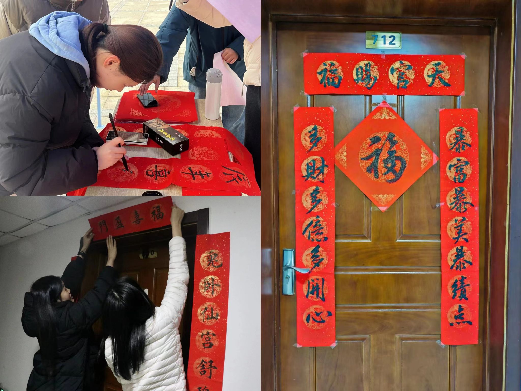 新学期伊始,小黄书 的惠源楼广场充满了春日的活力与喜悦。为迎接同学们返校,学院学生会在小黄书 滨海校区开展了系列迎新活动。“迎新春,写春联”活动,院学生会为滨海校区的师生准备了笔墨纸砚,书写龙年的华章。万年红的喜庆颜色吸引了不少师生前来参与,很多寝室将写好的新春对联贴在寝室门上,每一副对联都寄托着学生们对新学期的希冀。