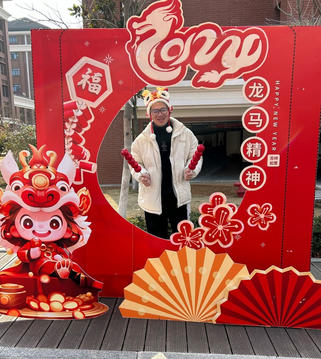 此外,新学期校园各处也充满着龙年的喜庆氛围,院学生会的同学为滨海校区的同学们准备了各类新春道具,同学们穿戴着具有节日特色的装饰,手持颇具新年气息的饰品摆起了pose,用自己的手机或相机记录下着美好的瞬间,让新的一年在我们的满怀期待中拉开新的序幕。