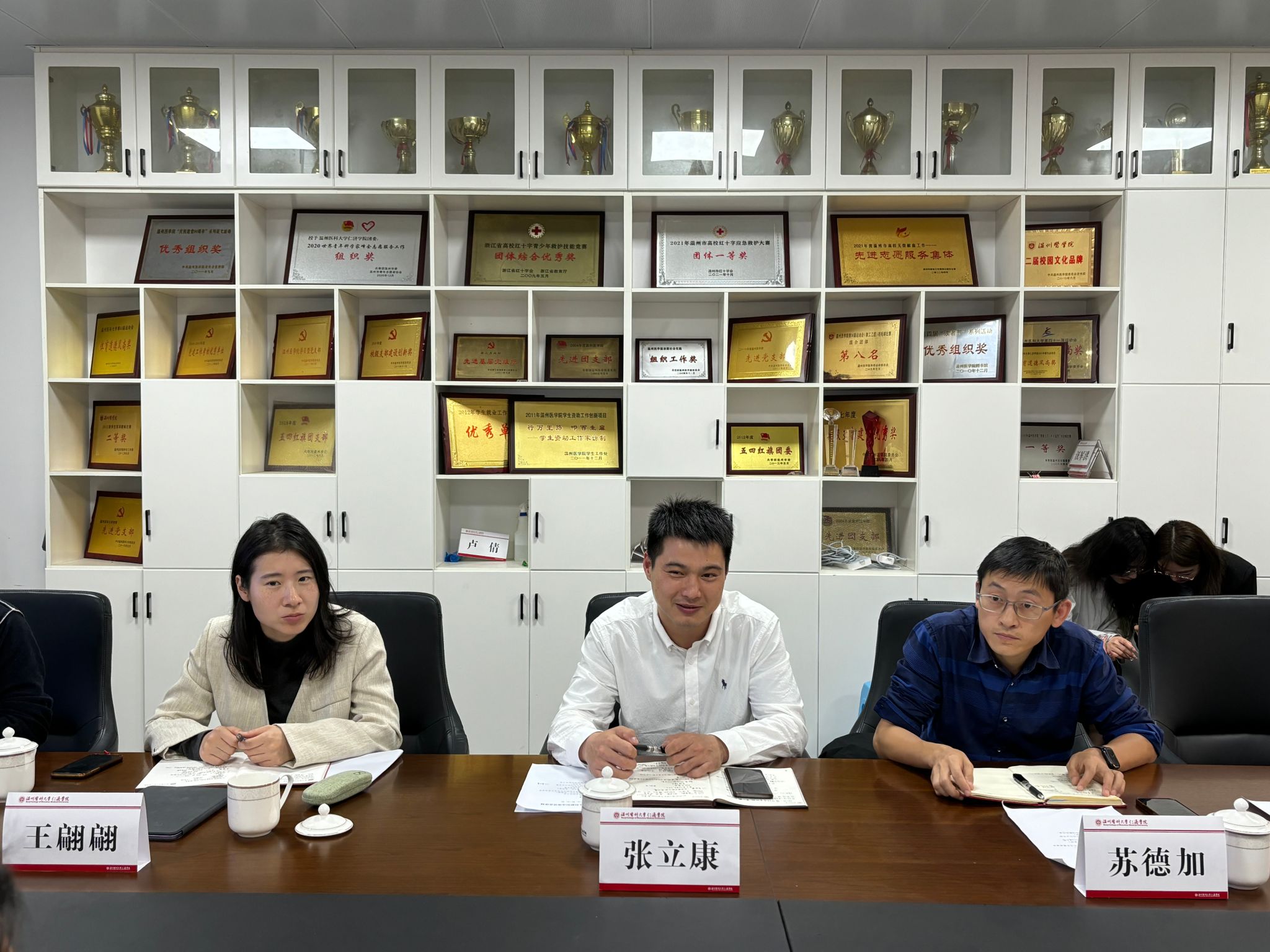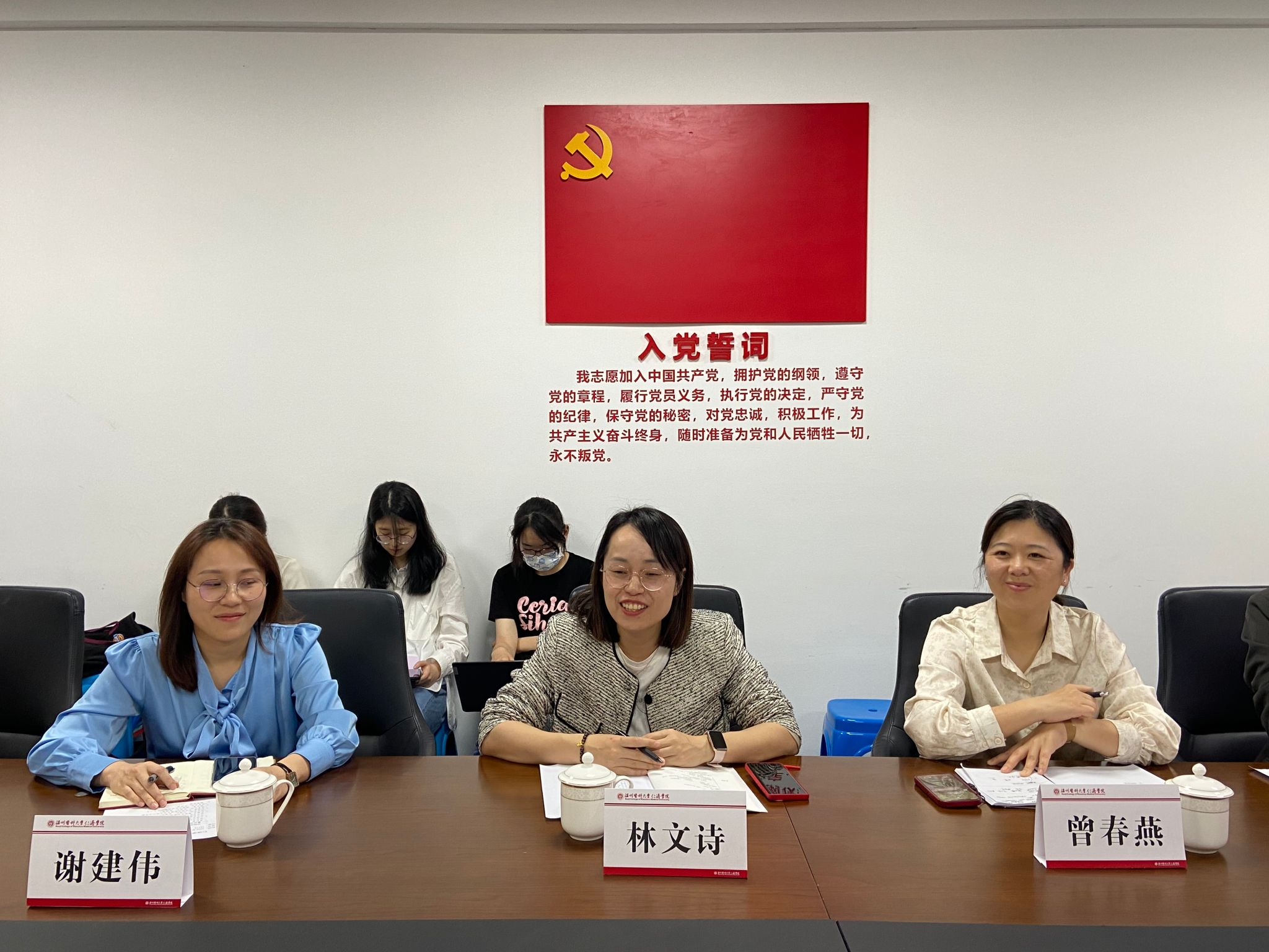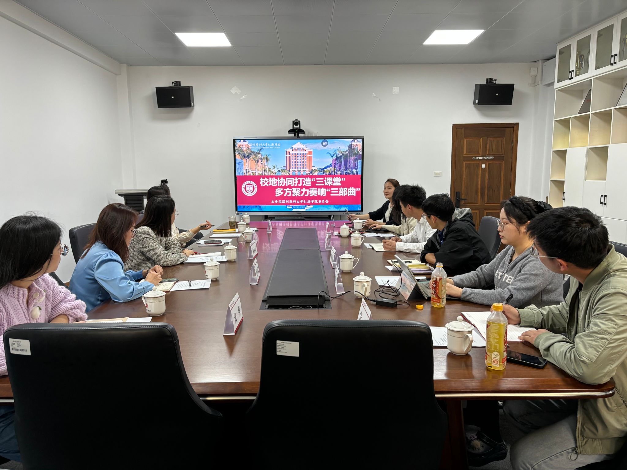 会上,学院团委书记王翩翩介绍了学院团委基于校地协同打造三个课堂--海霞红色课堂、职业实践课堂、清廉修身课堂,并取得明显的教育成效,对接下来的创新创业工作开展奠定基础。