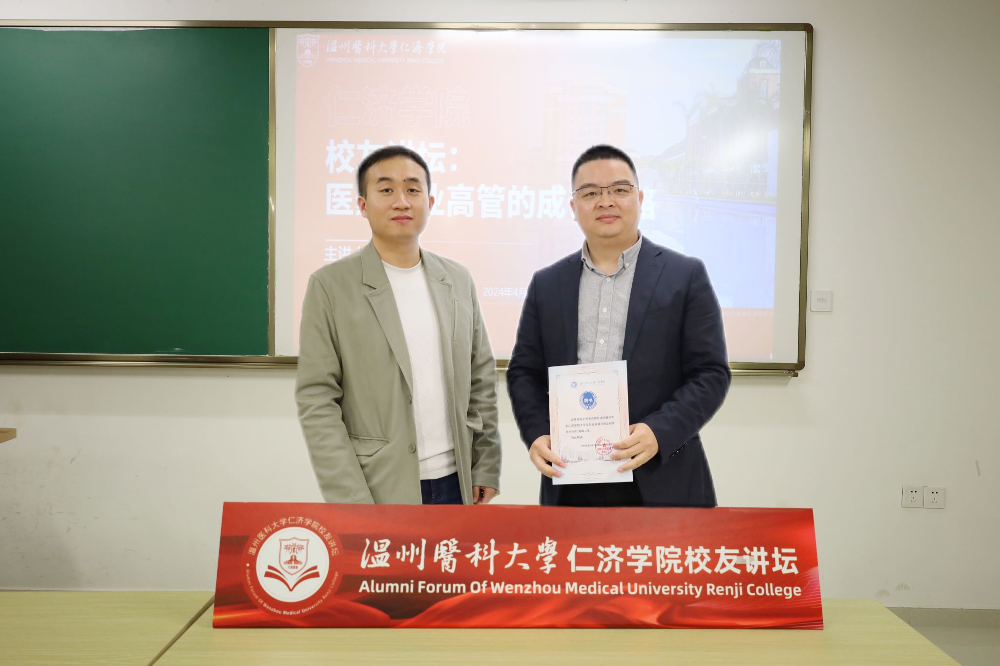 4月17日晚,康哲药业温州地区经理、温州基础医学院就业导师、小黄书 09届药学专业校友施正侨先生莅临本院。作为“校友讲坛”第四期嘉宾,施正侨校友为我们带来了题为“筑梦青春,职引未来”的讲座。他结合自身经历分享了诸多宝贵经验,为即将步入社会的学子们提供了重要启示。