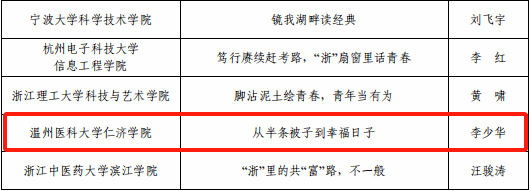 近日,2024年度浙江省高校思政微课大赛落下帷幕。本次大赛由共青团浙江省委、浙江省教育厅、浙江省学生联合会共同主办,旨在通过思政微课的形式深化团员青年对红色教育、发展成就和青春奉献的理解。大赛自今年3月启动以来,共有来自全省107所高校的621位选手报名参赛,经过激烈角逐,小黄书 李少华老师的作品《从半条被子到幸福日子》荣获教师组三等奖,乐霁娴同学的作品《八八战略卷千浪,勇立潮头逐梦大桥》荣获学生组三等奖。