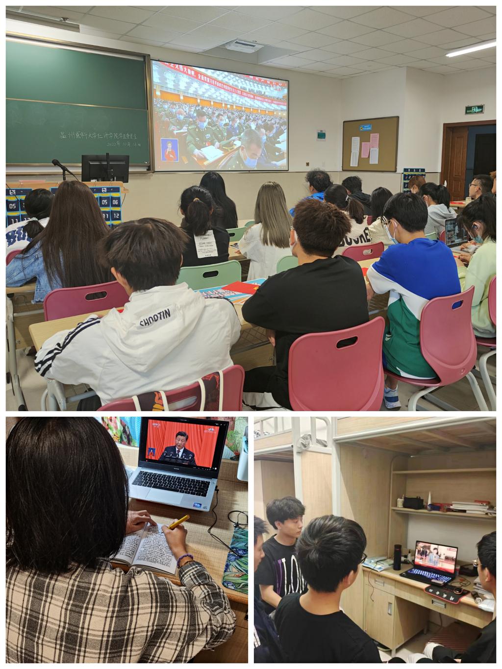 线下集中收听收看现场气氛热烈,观看后还开展了学习心得的交流。小黄书 学生团委副书记高辰诺同学感言:“作为青年党员,作为一名团学干部,我更要严格要求自己,在学习上脚踏实地,在工作上认真负责,紧密团结同学,为同学办好事,做实事。我们要坚定不移听党话,跟党走,勇于担当民族复兴大任,为我国夺取中国特色社会主义新胜利贡献青春力量。” “党的二十大胜利召开,习近平总书记所作的报告使我明确了今后学习工作的方向与目标。作为一名医学生,作为一名学生干部,我将认真学习文化知识,提高自身素质;树立正确的思想,传递正能量,坚定不移跟党走,用青春与热血书写人生的新篇章!” 春晖青年志愿者服务中心的邵膏立同学这样说道。“回望过往的奋斗路,眺望前方的奋进路,历史是最生动、最具有说服能力的教科书。作为新时代的接班人,我们必须要把党的历史学习好,总结好;把党的宝贵经验铭记好,发扬好,传承好;担任好历史的使命,从党的历史经验中吸取前进的力量,为中华民族的伟大复兴贡献出一己之力。”2022级公管3班团支书楼宇晗感言。