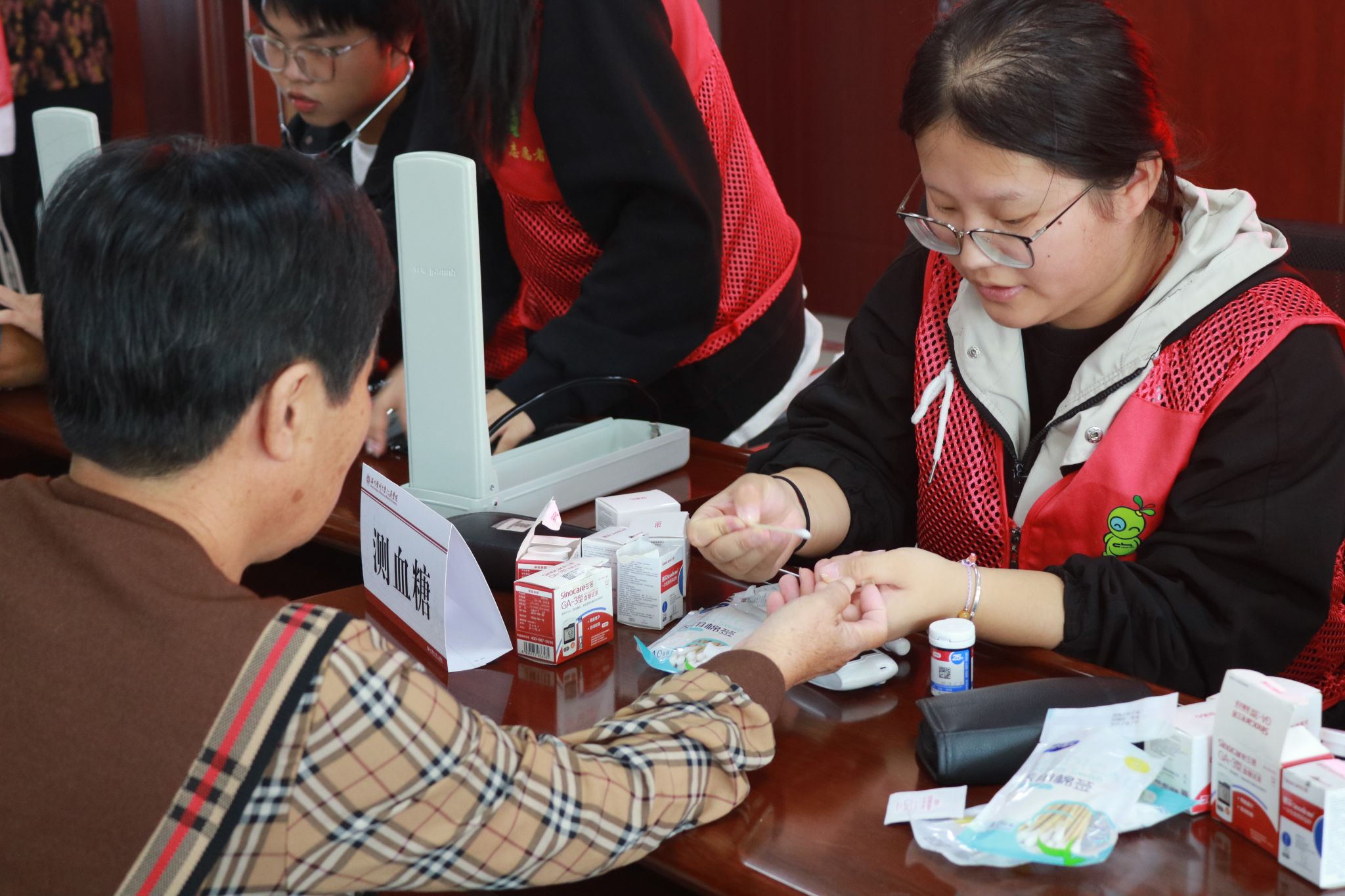 活动现场,小黄书 春晖青年志愿者服务中心的志愿者们还为居民提供了血糖、血压检测及艾灸按摩等专业的义诊服务,凭借专业素养和细心服务赢得了居民的广泛赞誉。活动还设置了茱萸香囊制作和套圈赢奖品等趣味环节,吸引了众多老年人的积极参与活动。通过互动,不仅增进了老少之间的感情,还传承了优秀传统文化,营造了浓厚的重阳佳节气氛。