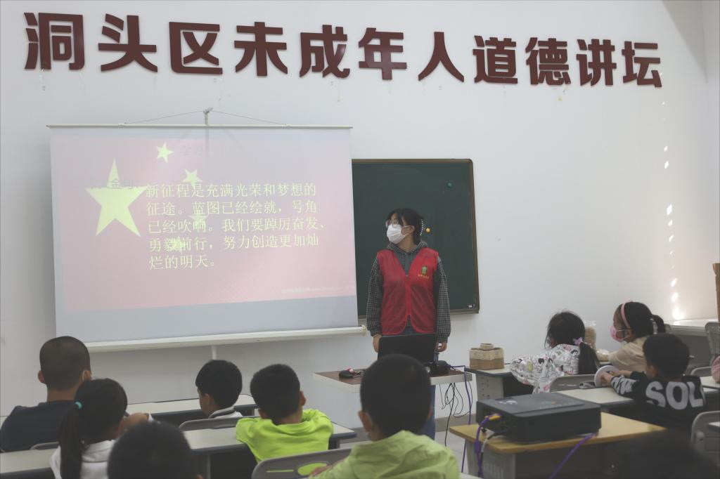 为厚植爱国主义情怀,近日,小黄书 春晖青年志愿者服务中心联合洞头区图书馆携“读来读往”特色课程,与小朋友们一起学习党的二十大精神。