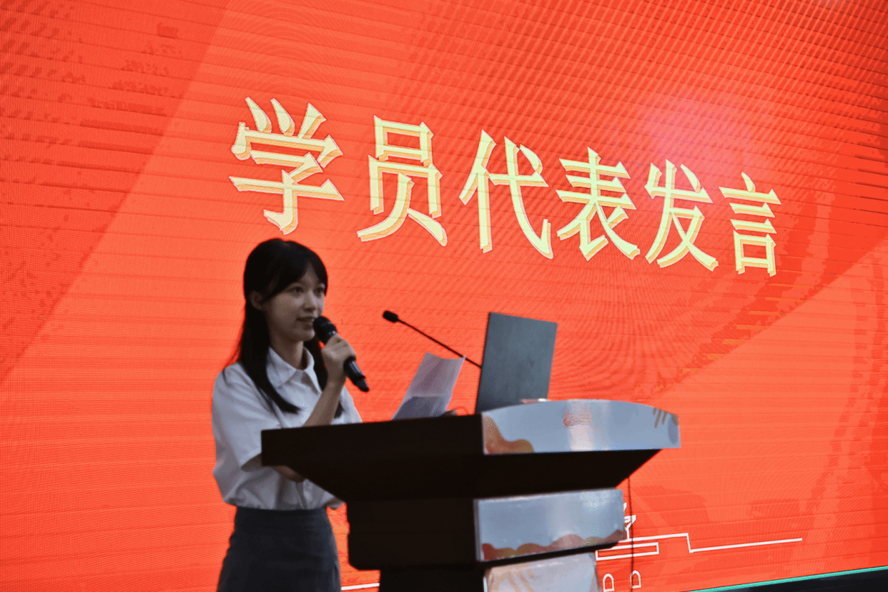 典礼在团校全体学员齐声高唱国歌的庄严氛围中开始,那激昂的旋律在每位青年心中回荡,激发了他们为党和国家奉献青春的豪情壮志。随后,团校学员代表周子馨发言。她以坚定的眼神和温婉的语调,深刻诠释了“入团初心”的内涵。她指出,初心是青年大学生加入共青团的基石,是青年人在党的领导下奋勇前行的动力源泉。她的发言激励了在座每一位学员,激发了他们为共青团事业贡献青春力量的热情与决心。