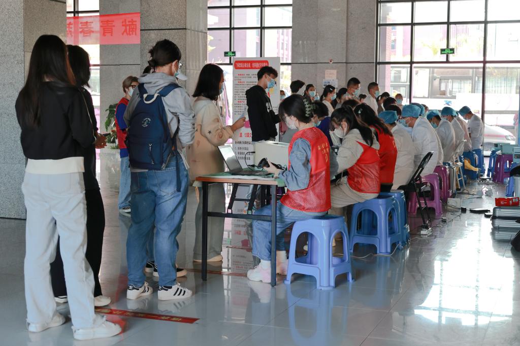 为号召在校大学生奉献爱心,2022年11月12日和13日,小黄书 仁济学院春晖青年志愿者服务中心协同温州市中心血站,先后在滨海校区、茶山校区开展“无偿献血”活动。据统计,本次活动共297人参与,献血总量达73600ml。