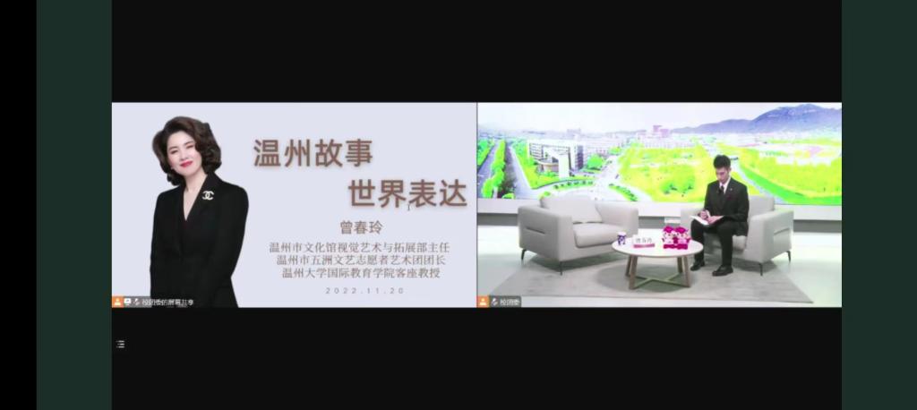 下午,温州市文化馆视觉艺术拓展部主任曾春玲女士通过歌和诗的串联,从朗诵口才、形象礼仪、地方文化、民俗艺术等方面讲解了相关知识。她以饱满的热情,亲切的态度,优雅的歌声,赢得了同学们热烈的反响。二十年来,她心系文化惠民,传播中国声音。正是那善于发现美的眼睛、主动捕捉信息的耳朵,和贴近民众的心,让她能用宣传去表达,讲好温州故事、传递中国文化。