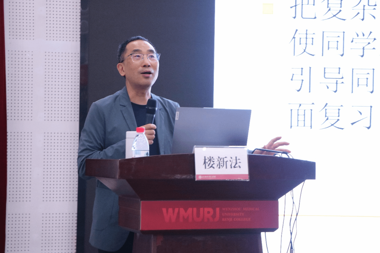 在讲座中,楼新法教授首先介绍了人体解剖学的定义,讲述了自己对于解剖学的理解和学习历程。随后楼教授还讲述了解剖学的学习方法,他提出要做到学习的典型化、形象化、通俗化。关于典型化学习,楼教授解释学习解剖学要将复杂知识简单化。楼教授以茂盛的树做类比,指出将树的树叶去了,留下一棵“冬天的树的主干”,最终留下的就是条理清晰的主干。关于形象化学习,楼教授介绍左半脑是人的抽象思维中枢,右半脑是人的形象思维中枢,他指出医学是形象的,要科学用脑,用右半脑去读书,切勿死记。关于通俗化学习,楼教授以“麻婆豆腐”和“味觉”的例子说明对于医学知识的“通俗明白,浅显易懂”是学好医学知识的境界。