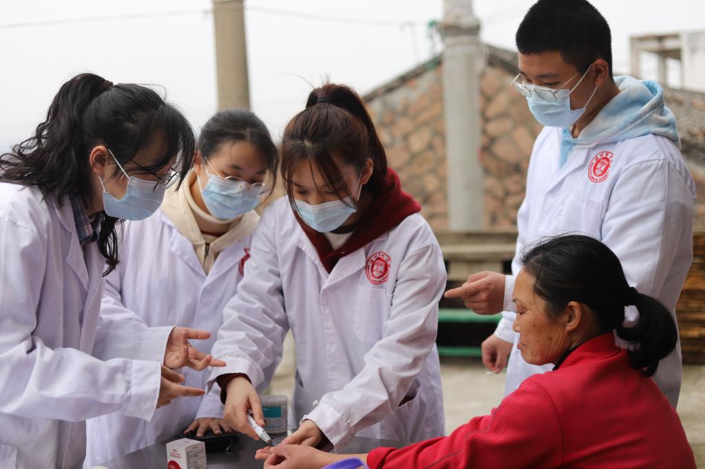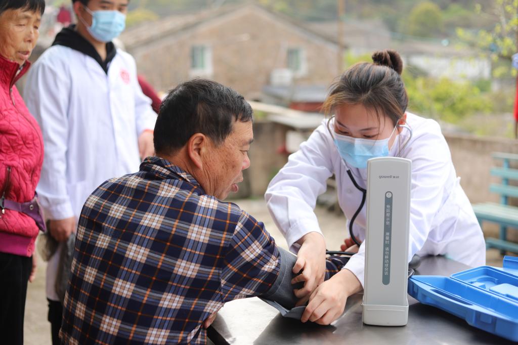 同时,因考虑到有行动不便的居民,“流动”组的志愿者携带血压仪、血糖仪等常用医疗器械,挨家挨户为居民们进行上门随访咨询。随访过程中,志愿者认真细致地为村民测量血糖、血压并记录数值,并主动询问他们的日常身体状况,根据具体情况给出了合理的建议和调理方案,帮助其树立科学的防病治病理念。与此同时,志愿者们还主动与老人聊天,倾听老人的分享。