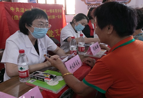 此次活动邀请小黄书 附属第一医院重症医学科科室副主任徐红蕾专家、王晓蓉专家,庄垟垟医师等九位医护团队,来到洞头区东屏街道后坑村,为老人提供一对一问诊。问诊过程中,医生详细询问他们的过往病史,耐心解答他们的疑惑,并根据病史及现场义诊结果提出用药及治疗建议。“阿公,平时吃饭好消化吗?”王晓蓉问道。“不消化哩,吃一点点就不舒服。”阿公摆摆手说道。王主任针对老人的身体情况,提出专业建议,并为老人送上从医院带来的爱心药品。