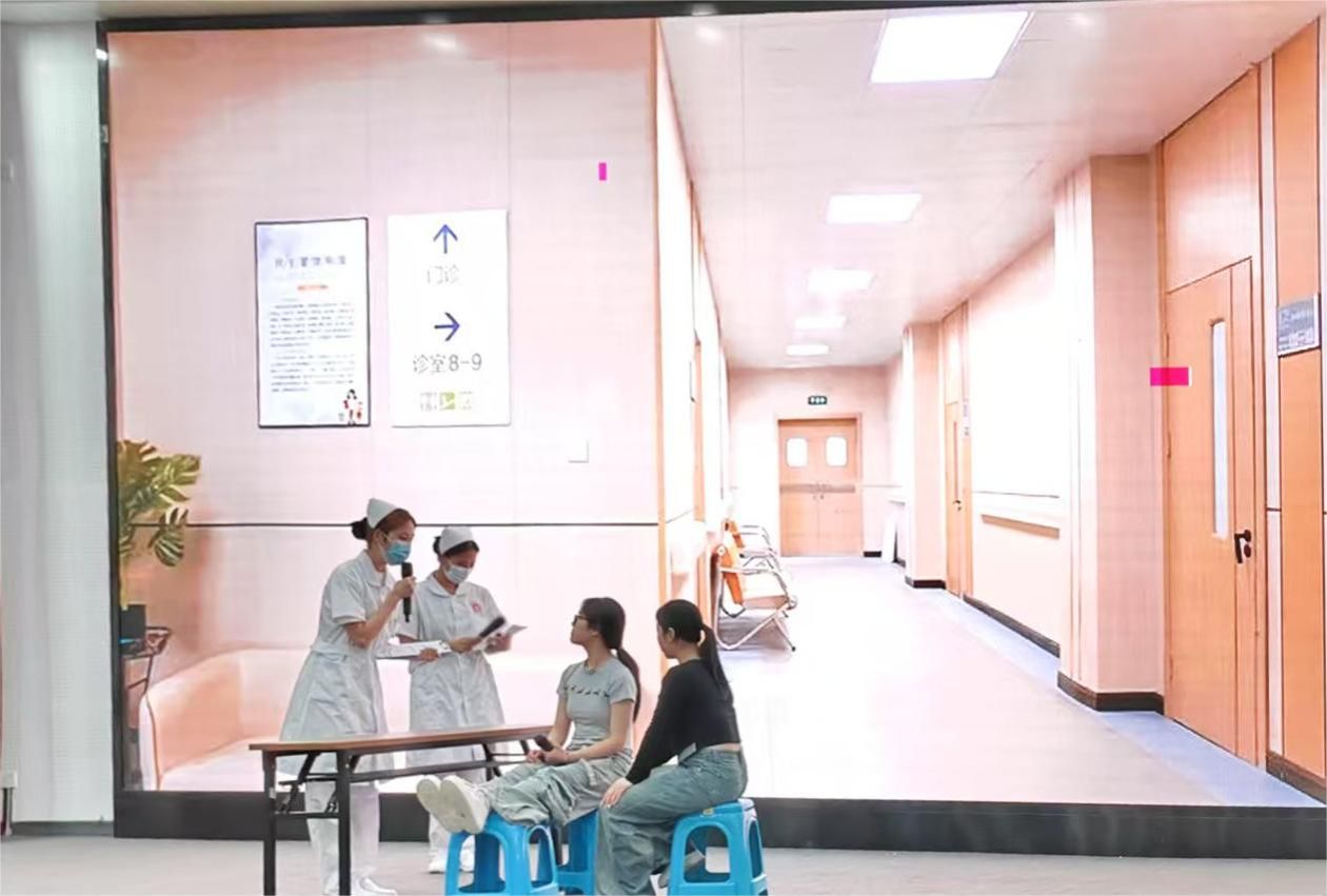 本次大赛精心设置三轮赛制,大赛在“礼仪情景剧”中拉开帷幕,七支参赛队伍将护理场景巧妙编写成剧本,把职业礼仪融入其中。在入院接待、术前宣教、术后关怀等模拟场景里,选手们用规范的手势引导、温暖的微笑和专业的操作流程,展现出护理工作的艺术性和人文关怀,赢得观众阵阵掌声。第二轮“争分夺秒”环节“方言大师”现场出题,选手在限时内把晦涩的方言诉求精准转化为医学术语,迅速完成医患双向沟通。最后一轮“护理沟通情景剧”参赛选手化身“临床卫士”,模拟病人挂号、心理疏导等典型场景展开比拼。选手们凭借扎实的专业知识和敏锐的临场反应,化解各类护患矛盾,精彩的表演让现场掌声和欢呼声不断,将比赛气氛推向高潮。