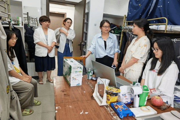 章成斌一行先后考察了“兰心育苗”夏令营活动和“兰心惠民”系列健康服务活动现场,详细了解实践开展情况。他们走进课堂,欣赏孩子们制作的贝壳画,对孩子们的创意和想象力与实践团成员的努力与细致表示赞扬;随即走访学生住宿及办公区域,细致检查了住宿安全、环境卫生及生活设施配备情况。