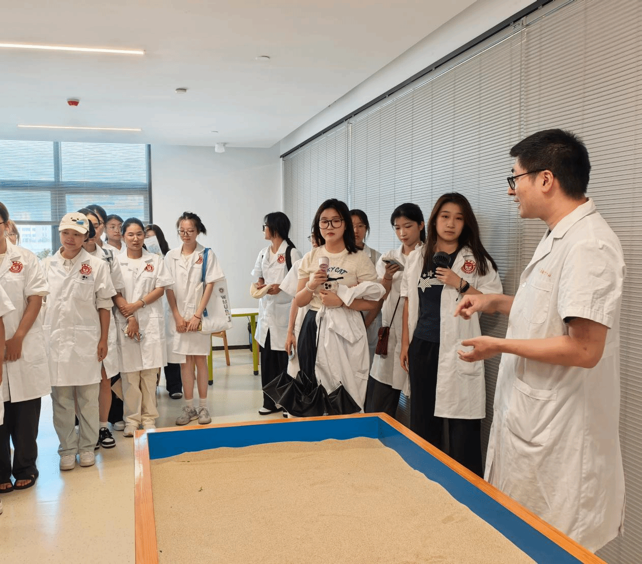 在疾控中心工作人员的引导与讲解下,师生首站走进中心实验室。从高精度微生物检测设备到标准化的样本处理流程,工作人员系统介绍了水质检测、传染病病原体筛查等关键环节的操作规范与技术要点,并结合洞头区作为海岛地区的区域特点,重点阐释了与海洋环境相关的健康监测工作内容。通过实地观摩,学生们对实验室数据背后所承载的科学精神与公共健康责任有了更为直观的认知。