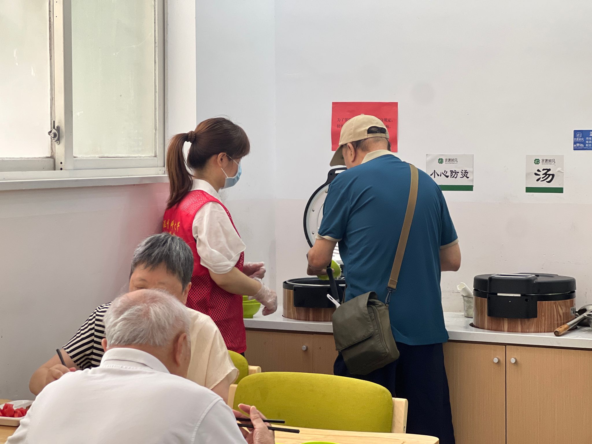 党员教师们身穿红色马甲,精神饱满地投入到各项工作中。他们有的协助老人点餐,耐心询问老人的口味偏好;有的负责引导老人入座,细心关照他们的身体状况;还有的在厨房与餐桌间穿梭,确保每一份饭菜都能准时送达居民手中。
