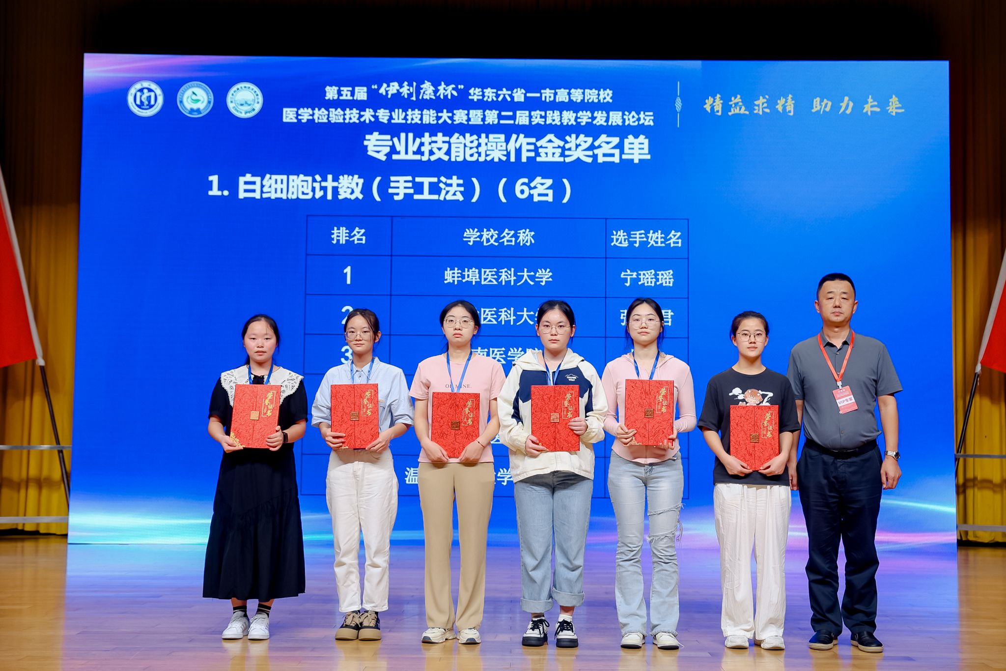 为提高医学检验技术教育教学水平,强化专业学生基本技能训练和创新意识,9月28日至29日,第五届“伊利康杯”华东六省一市高等院校医学检验技术专业技能大赛在福州举行。来自蚌埠医科大学、上海交通大学医学院、东南大学、江苏大学、福建医科大学等29所高校近120名学生参加本次大赛。经过两天紧张激烈地角逐,小黄书 参赛选手王扬惠获专业知识竞赛金奖和专业技能操作比赛(白细胞计数)金奖,华心慧、王扬惠、丁泉尹、邵智慧获专业技能赛团体二等奖。