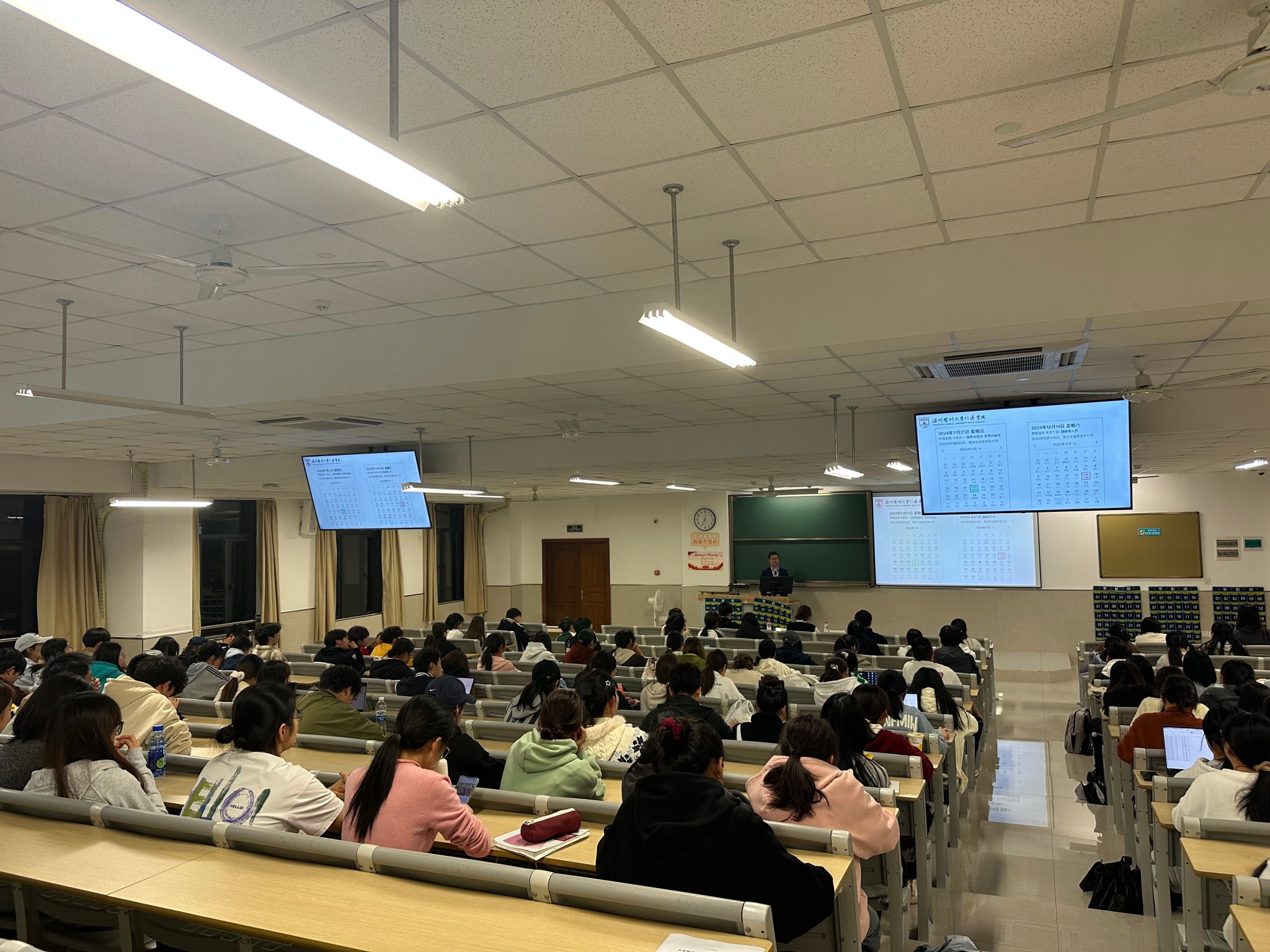 为帮助学生更好地备战2024年下半年大学英语等级考试,提升英语综合能力,11月22号晚上,一场备受瞩目的四六级讲座在1301教室激情开讲。此次讲座由小黄书 副院长戴建春主讲,旨在为同学们拨开四六级考试的迷雾,提供科学高效的备考策略。朋辈分享员娄辰同学、叶佳树同学也分享了四六级高分心得以及考试技巧。