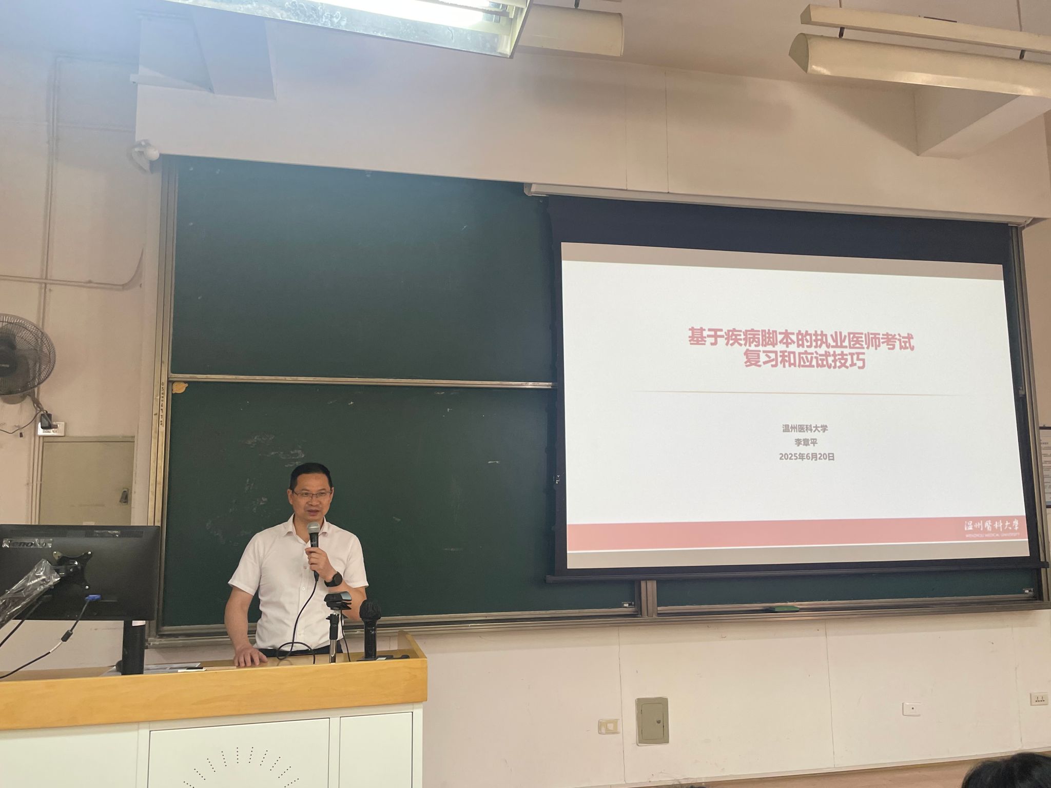 为助力广大临床医学类毕业生高效备考,提升应试能力,学院于6月20日成功举办了一场执业医师资格考试主题讲座。本次讲座特邀小黄书 院长李章平担任主讲人,吸引了2025届临床医学类专业近200名毕业生参与。