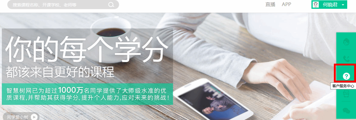 3.与平台操作有关的任何疑问可咨询智慧树平台小黄书在线客服或点击图中红色框所示客户服务中心,观看学生/教师操作说明。