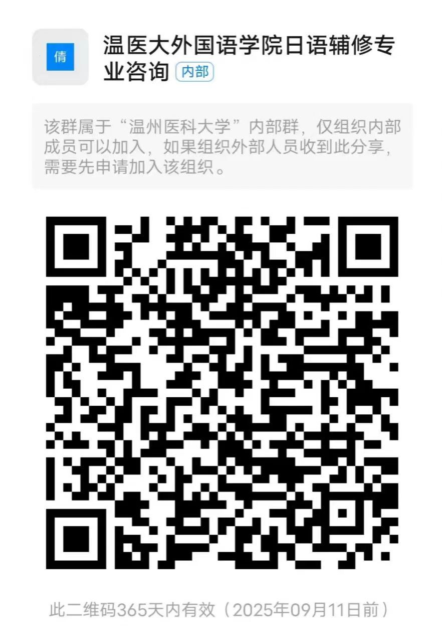2.有意向修读日语辅修专业的同学,可扫码下方二维码,加入日语辅修专业咨询钉钉群了解更多相关信息。