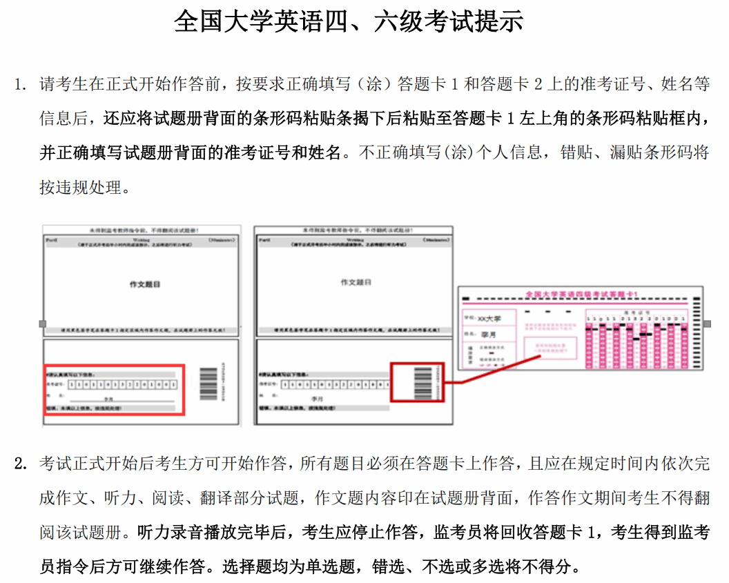 附件:四六级考试条形码粘贴方法