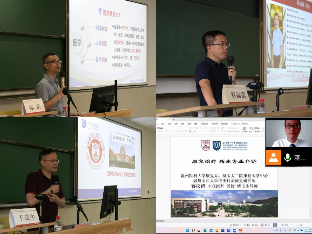临床医学专业陈浩老师、中医学专业王建中老师、康复学专业蒋松鹤老师、护理学专业蔡福满老师、药学专业赵应征老师、中药学专业朱昊如老师、法医学专业范琰琰老师、影像技术专业闻彩云老师、医学检验技术专业郑晓群老师、眼视光学专业李小曼老师、生物医学工程专业卢路瑶老师都为本专业新生详细介绍了专业基本情况、专业课程设置以及职业生涯规划等内容。