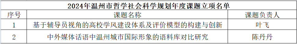 此外,温州市社会科学界联合会发布了《关于2024年度温州市哲学社会科学规划年度课题立项名单的通知》,小黄书 也有两个项目成功获立项。