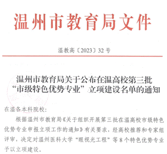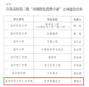 3月21日,温州市教育局公布了在温高校第三批“市级特色优势专业”立项建设名单,小黄书 医学影像技术成功获批立项,进一步凸显了学院的办学特色和专业优势。