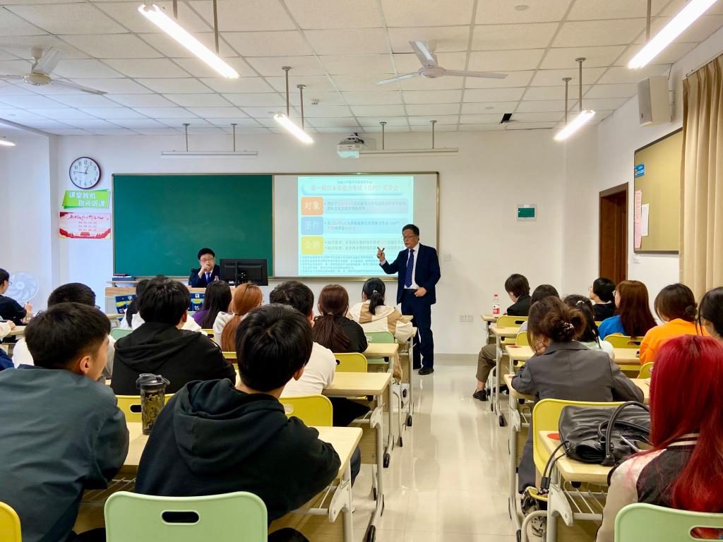 会后,日本北陆大学一行前往滨海校区,为小黄书 日语专业的学生展开项目说明会,鼓励更多对日本语言、文化等具有浓厚兴趣的优秀学子前往日本进修。