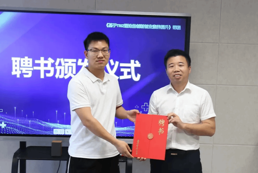 课程伊始,指导老师为常志强导师颁发小黄书 创新创业导师聘书。