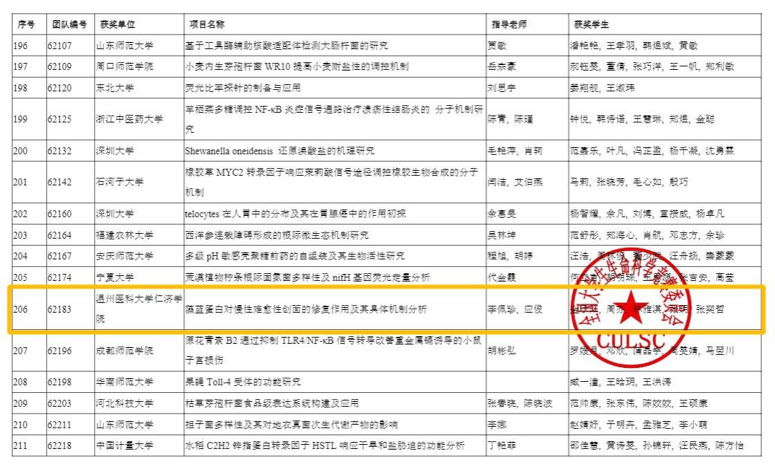 据悉,全国大学生生命科学竞赛(CUSLC)是涵盖生物、食品、医学、药学、农学、环境等高校生命科学领域的全国性赛事,分科学探究和创新创业两个赛道,是教育部官方认可最具含金量、最具参赛价值的56项全国大学生学科竞赛之一。