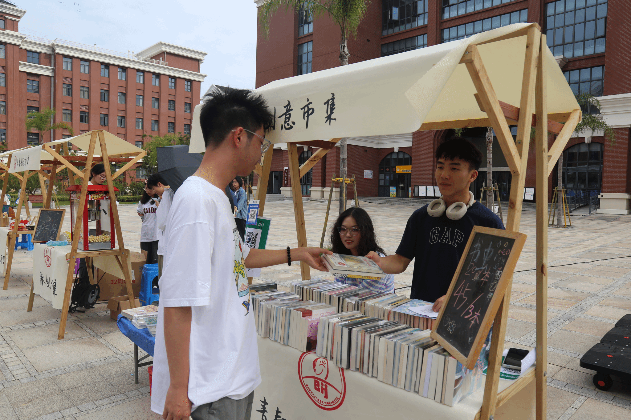 在活动招募阶段,同学们自发组织成团,积极报名申请摊位,准备好自己要提供的商品。为活动的顺利开展奠定了基础。在活动过程中,同学们摆出各种小摊:例如,在书摊上,书籍被细心地分类包装好,有序地排列着。除此之外,同学们的创意不止步于学习物品,还有爆米花小摊,饮品小摊等等,吸引了大批同学前来选购各样商品。
