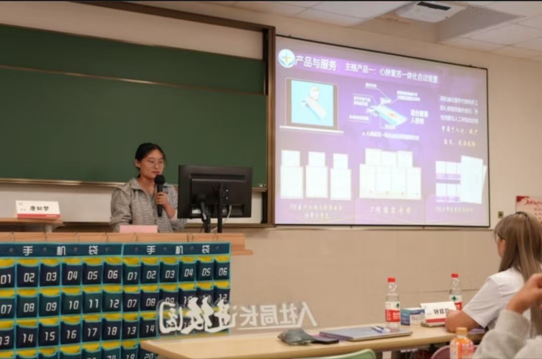 紧接着第二位发言的是唐如梦学姐,她所负责的急救先锋项目致力于向社会传播科学的急救知识,把握住心脏骤停后的黄金十五秒,在危急关头挽救更多人的生命。依据这个目标,她的小组开始进行各项急救课程的开设和各类急救器材的研发,希望能低成本、高效率地向中非各个地区带去专业的急救知识和器材。唐如梦学姐的创新创业成就融合了高新科技和人文关怀两个维度,用科技进步的火把照亮了更多地区医学急救进步的方向,这让在座的同学们都十分动容,大家都期望能以唐学姐为榜样,用自己的专业知识和大胆想法促进地区医疗事业的发展,挽救更多生命。