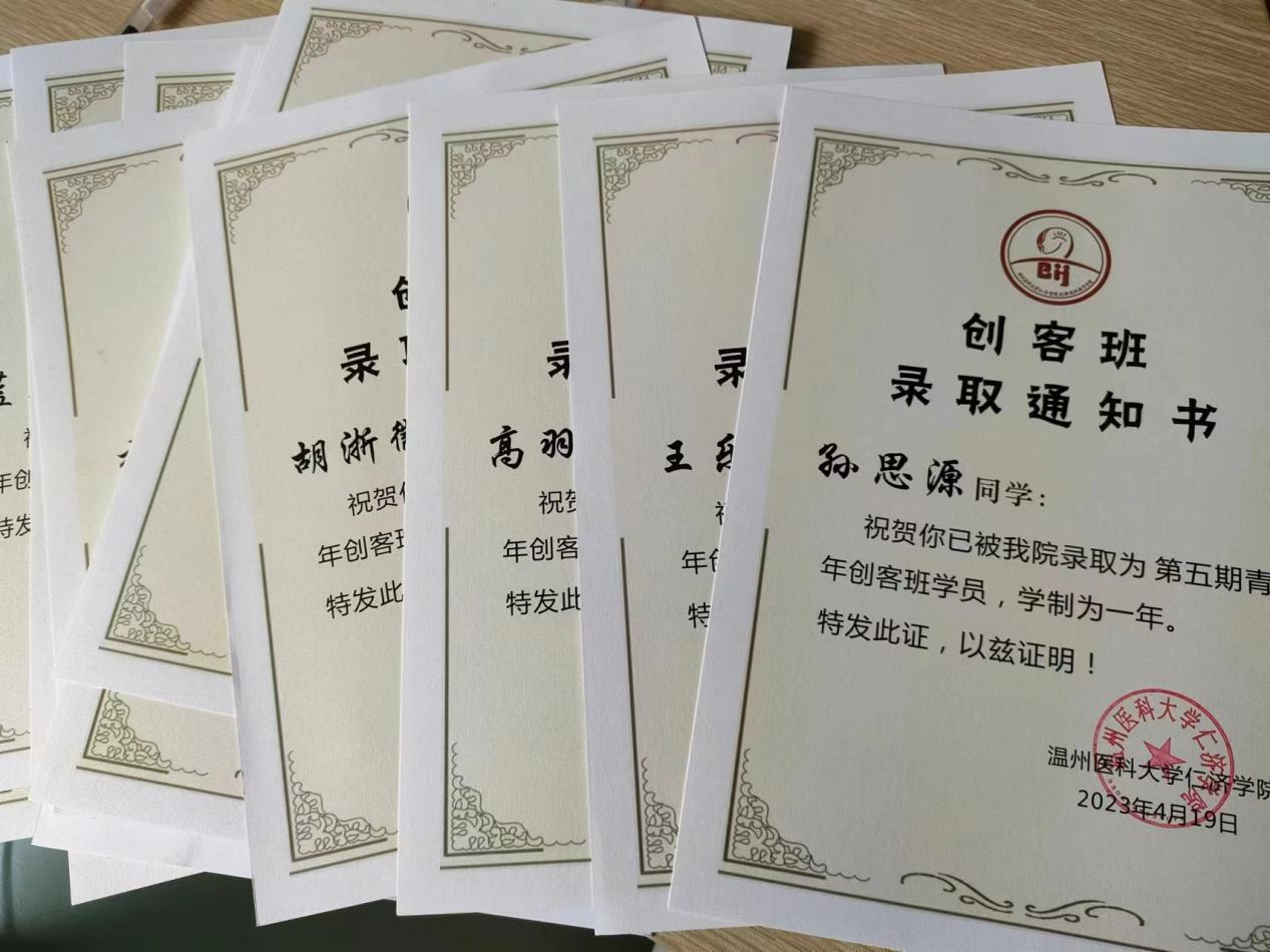 最后大家合影留念,用照片记录这意义非凡的时刻,由两位指导老师逐个为创客班学员颁发录取通知书,为庆祝新兴学子加入创新创业的行列。不仅如此,指导老师们及创新创业中心为大家精心准备了礼品:个性专属书签、订制版笔记本、书写钢笔、院会徽章