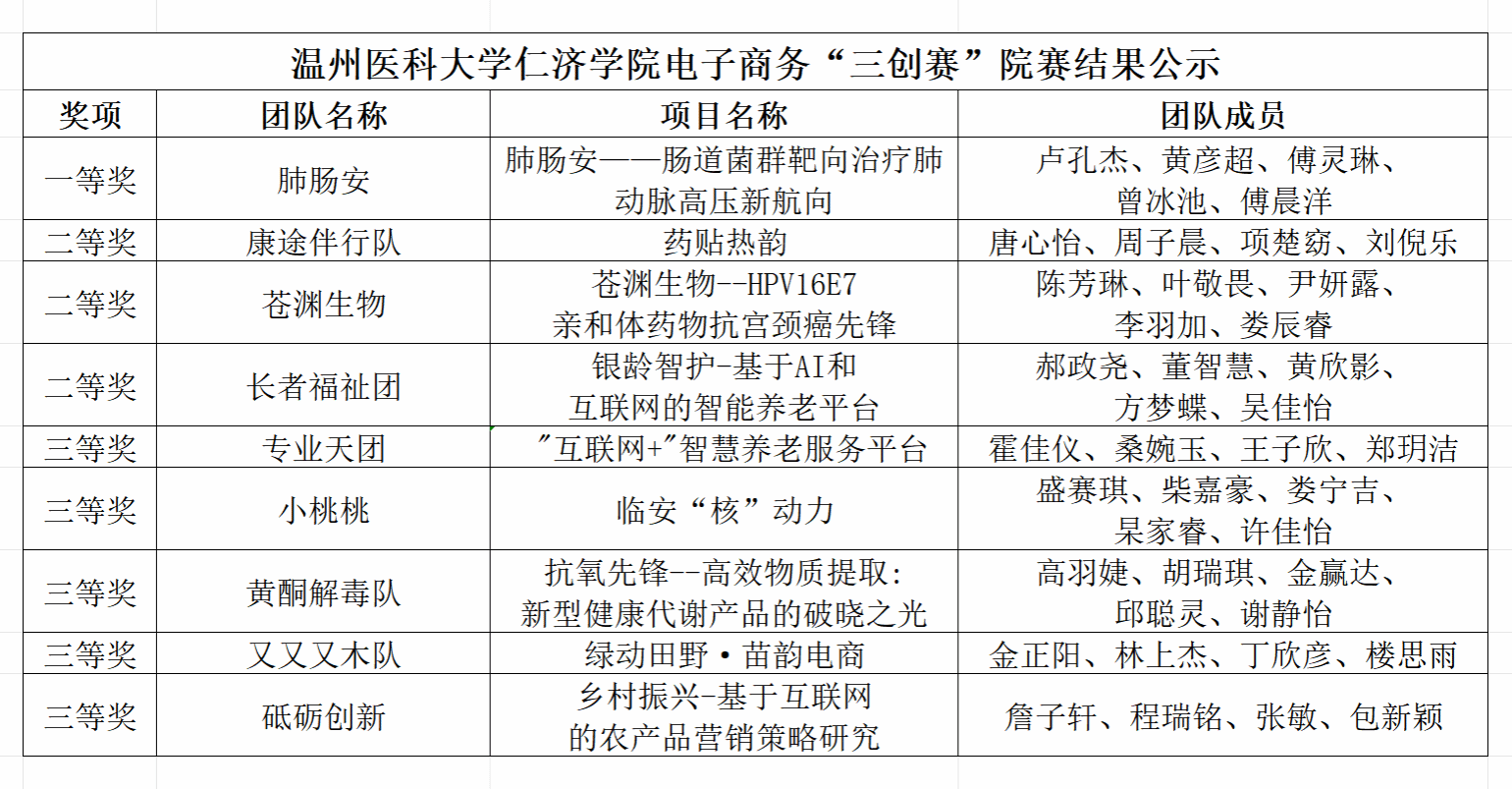 经学生个人申报,创新创业教育学部审核,通过专家评审,现将小黄书 电子商务“三创赛”院赛结果公布如下: