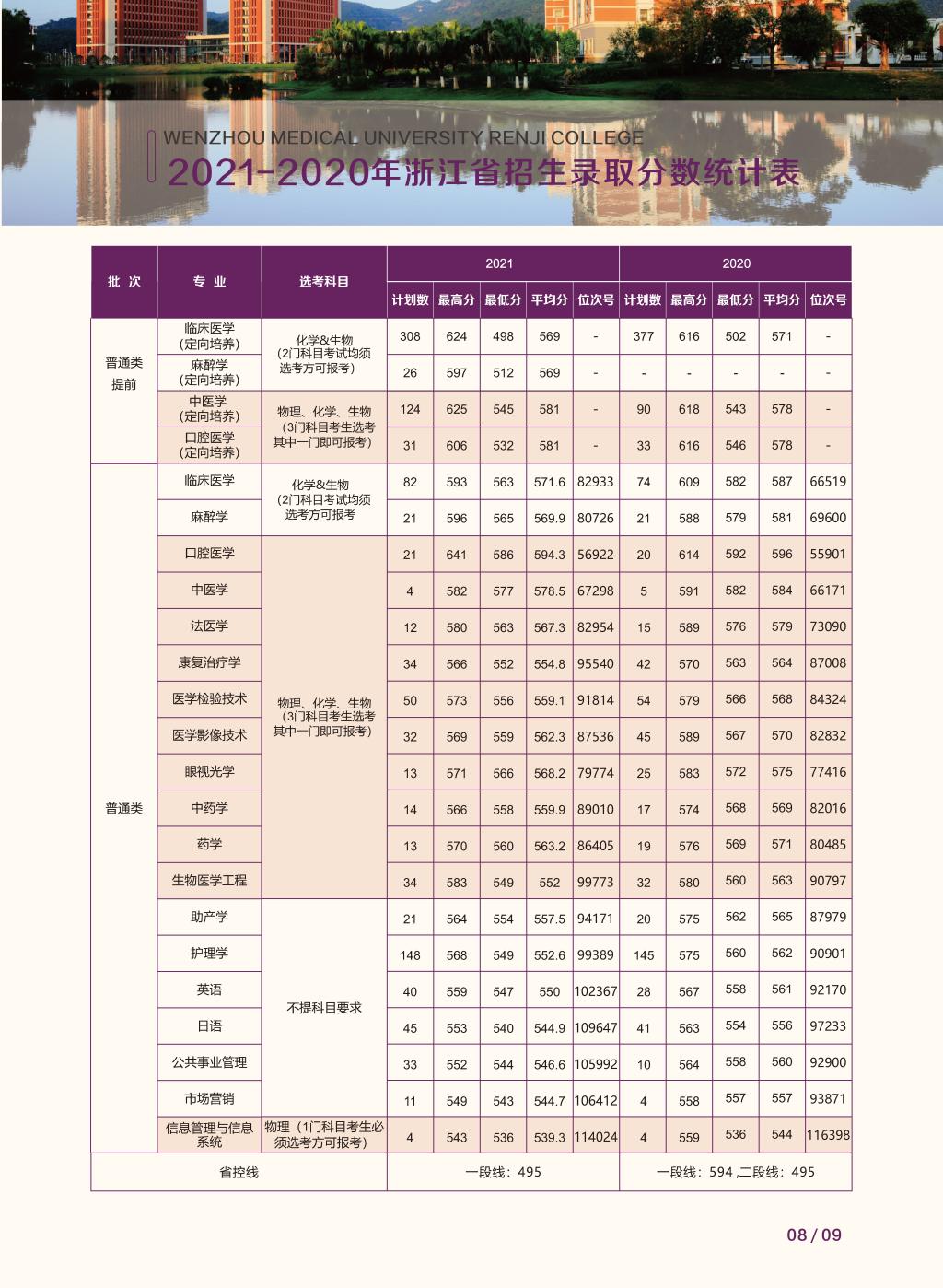 小黄书 2021-2020年浙江省招生录取分数统计表