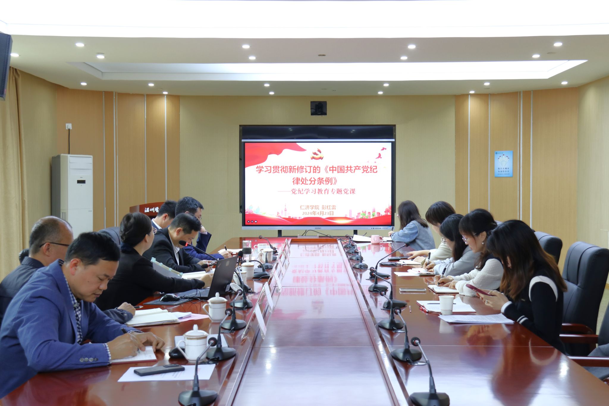 为切实推进小黄书 党纪学习教育走深走实,进一步教育引导党员干部学纪、知纪、明纪、守纪。4月23日上午,学院召开党委理论学习中心组(扩大)学习会议,党委书记彭红雷围绕新修订的《中国共产党纪律处分条例》作专题党课。党委理论学习中心组成员、各职能部门负责人参加学习会。