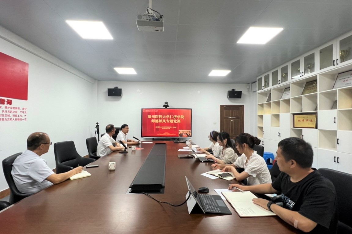 教工第一党支部于6月14日率先开展《自觉加强师德修养 争做“四有”好老师》师德师风专题党课,全体党员20余人通过视联网跨校区参加会议,学院副院长朱晓东、纪委书记林体排参加学习会。