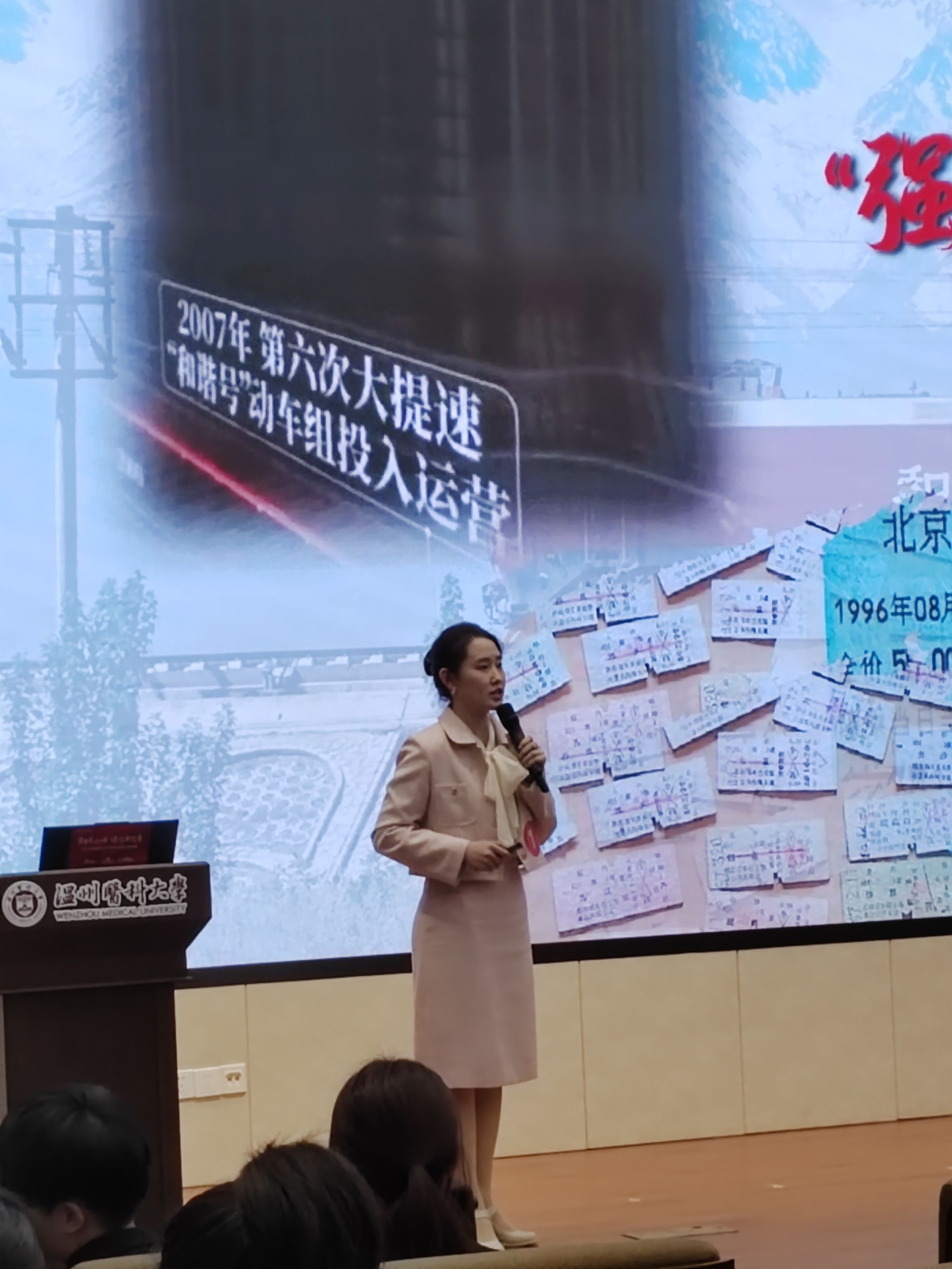 是否有一张火车票,让你念念不忘。刘琦老师以“车票印记,家国轨迹”为题,讲述了火车票的变迁,从最早的硬纸板票到粉红色软纸票、磁介质小蓝票,再到现在的无纸化电子客票。纸短情长,每一代车票的升级都是科技的进步、时代的进步,也见证着中国铁路从后来者跃居世界首位所经历的艰苦之路,诉说着中国发展最美好的未来。