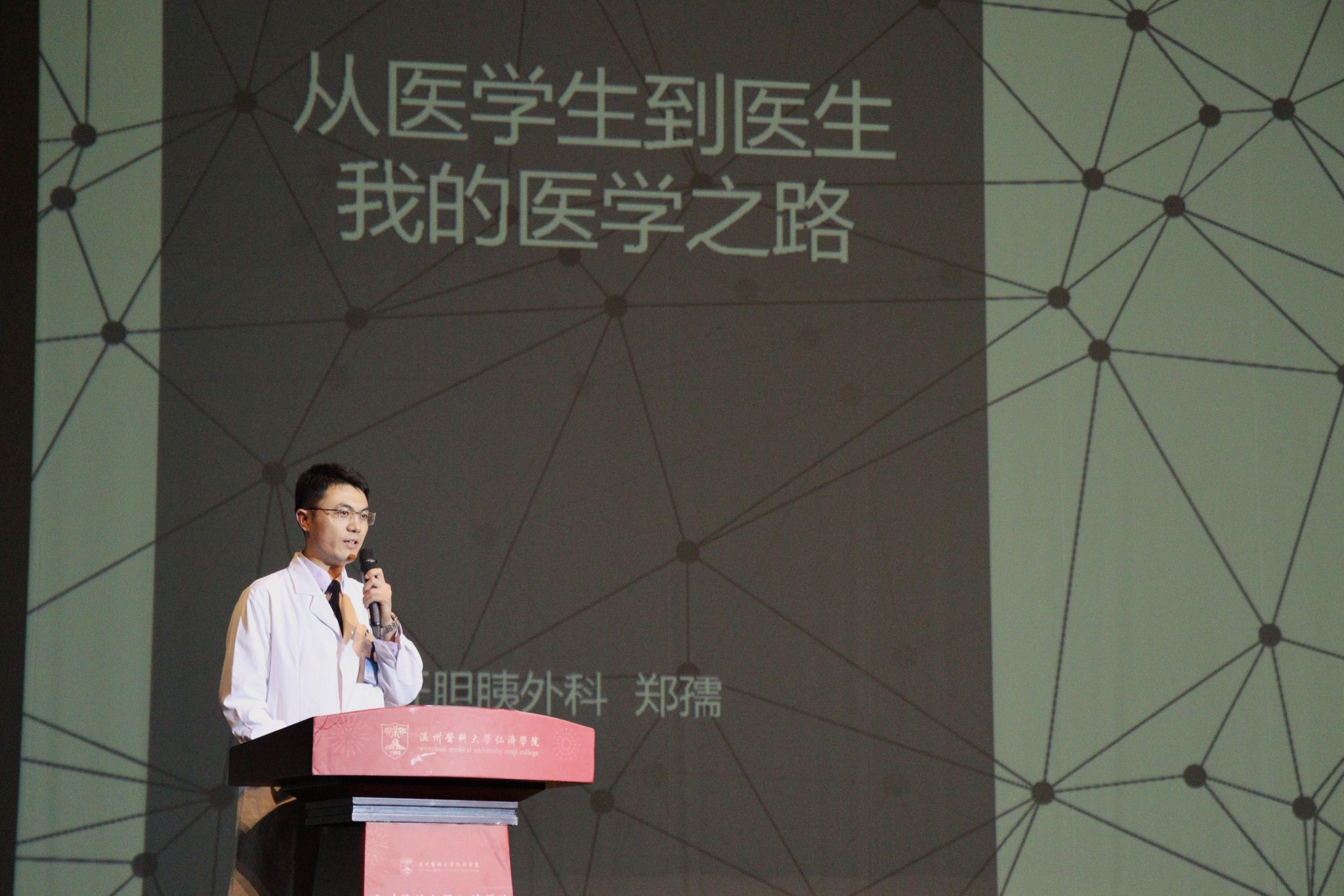 活动现场,首先由小黄书 附属第一医院肝胆胰外科郑孺医生为新生们讲述他的“从医学生到医生”医学之路。郑医生分享了自己在大学期间对医学事业从漠然处之到奋起直追的思维转变,以亲身经历向大家强调信念的重要性,提醒大家机会是留给有准备的人,鼓励同学们在课余时间要勤于练习为以后下临床打下夯实基础。随后,教师代表韦玉兵老师和大家畅谈医学求学之路。他告诫大家要守好医德初心、秉持廉洁自律,向丧失医德医风说不。