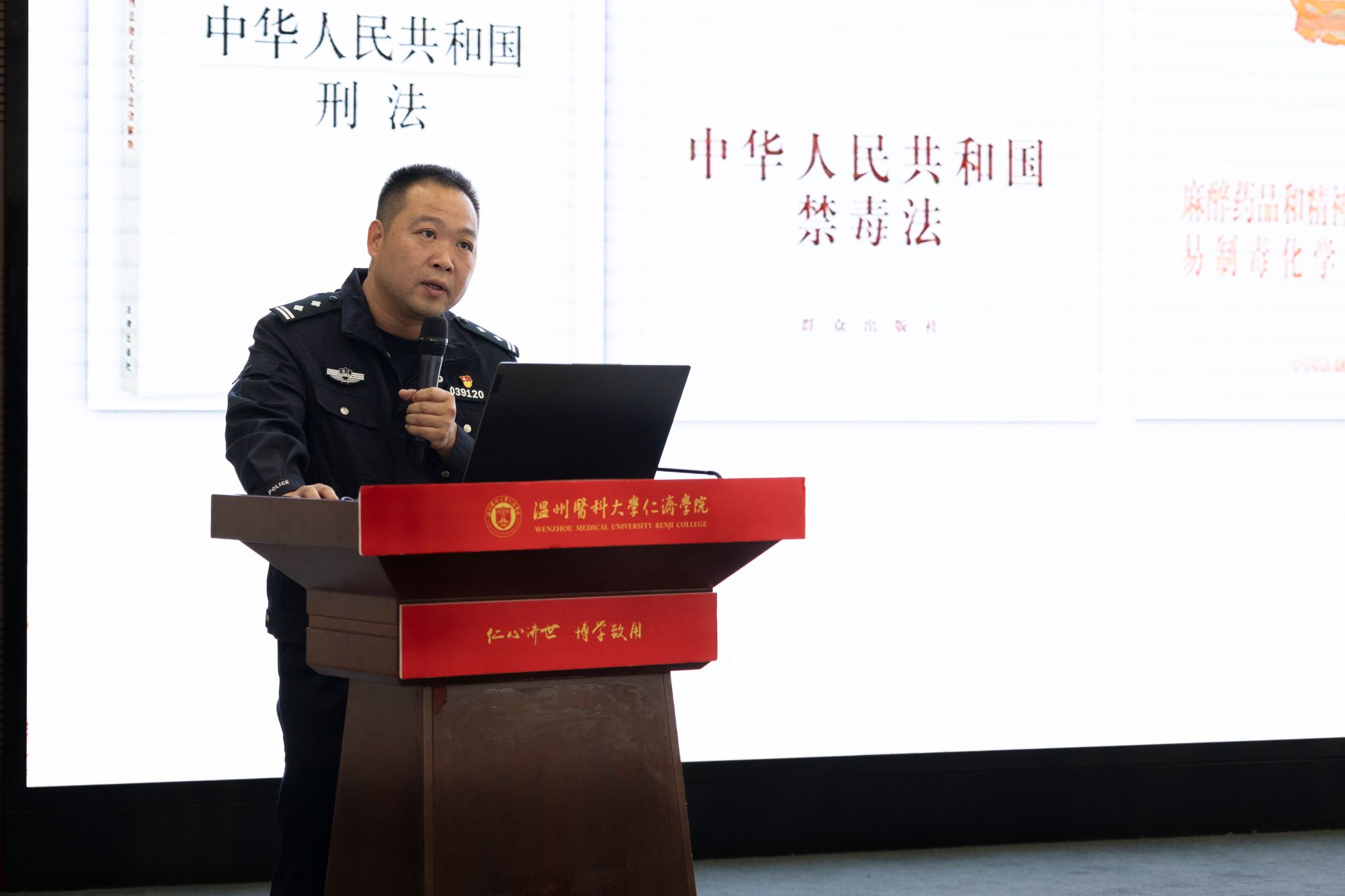 为进一步深化禁毒教育,4月12日下午,“构建绿色校园,构筑禁毒防线”禁毒讲座在仁心厅举行,300余名师生参与讲座。本次讲座特邀洞头区禁毒大队副大队长何志珍、北岙街道禁毒办主任陈翔主讲。何志珍警官通过分享真实案例,深刻揭示毒品的危害,为所有人敲响了警钟,带来一堂生动且富有教育意义的禁毒课堂。陈翔主任则结合戒毒者的亲身经历,让师生们更加直观地了解到毒品的破坏性,认识到戒毒过程的艰辛。通过这些多角度、互动性强的方式,提高师生对毒品危害的认识,增强防范意识。